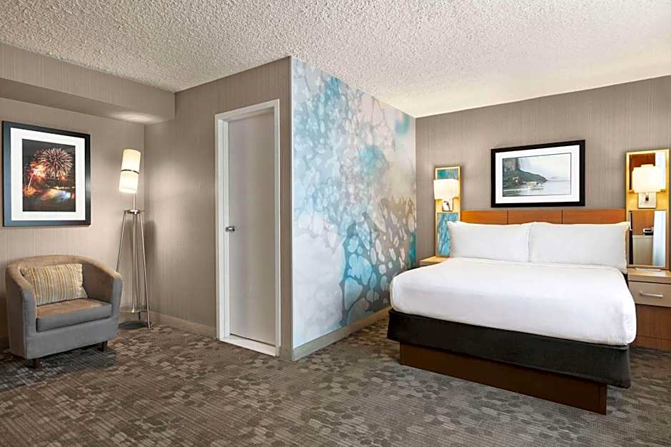 The hotel offers a variety of rooms including King Suites, Deluxe King Suites, Superior King Suites, Wellness Rooms with 2 Queen Beds and Skyline View, Non-Smoking, Queen Rooms, Queen Suites, Deluxe Queen Rooms with Two Queen Beds, and King Rooms. All rooms are non-smoking and range in size from 301 sqft to 603 sqft. The rooms can accommodate 2-4 adults and 1-3 children, depending on the room type. Bed sizes include King size, Queen size, and Queen size with sofa beds.