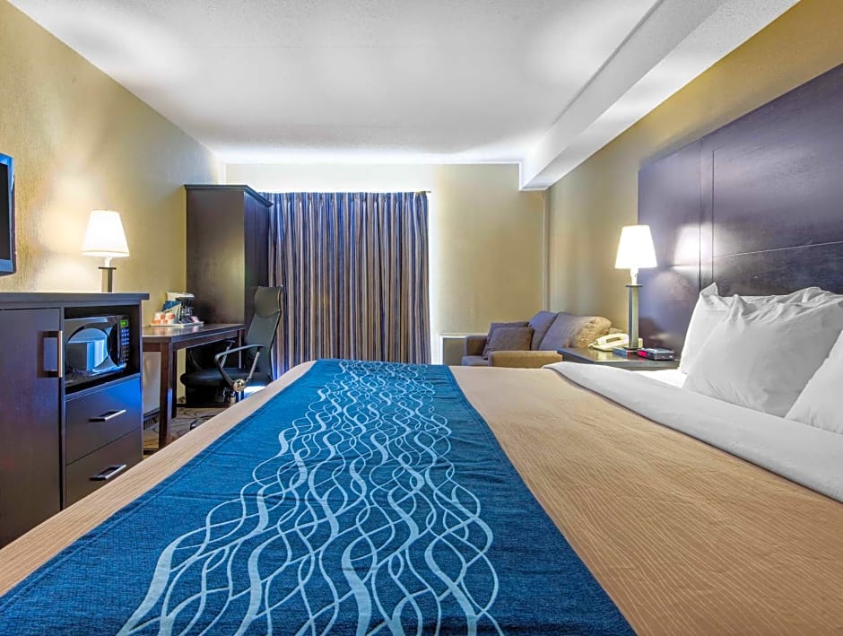 The Comfort Inn hotel offers various types of rooms including Efficiency Queen Rooms with Sofa Bed, Business Queen Rooms with Sofa Bed, Queen Rooms with Two Queen Beds, and King Rooms with Sofa Bed. All rooms are non-smoking and have a room size of 205 sqft. The rooms can accommodate a different number of adults and children, ranging from 3 adults and 2 children to 4 adults and 3 children. The beds provided are either queen size beds or king size beds, with some rooms also offering a sofa bed.
