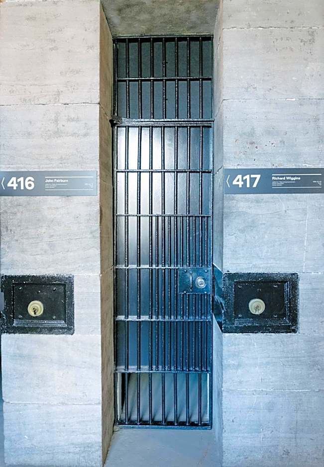 Experience a once-in-a-lifetime stay in an authentic jail cell with a double bed that recreates the conditions faced by inmates. Fresh linens and towels included. Shared bathroom, breakfast included, and a free historical tour of the jail. Plus, enjoy access to common areas, including a fully equipped kitchen.