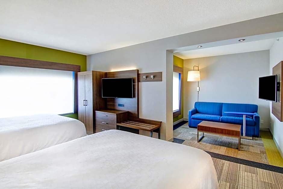The Holiday Inn Express Hotel & Suites Toronto - Markham offers a variety of room types including Standard Rooms with 1 King or 2 Queen beds, Queen Suites with 2 Queen beds, Executive King Suites with a Sofa Bed, Deluxe King Suites with a King bed and Sofa Bed, and King Suites with Disability Access. All rooms have a size of either 183 sqft or 215 sqft and are non-smoking. The rooms accommodate varying numbers of adults and children, with the largest room accommodating up to 6 adults and 4 children.