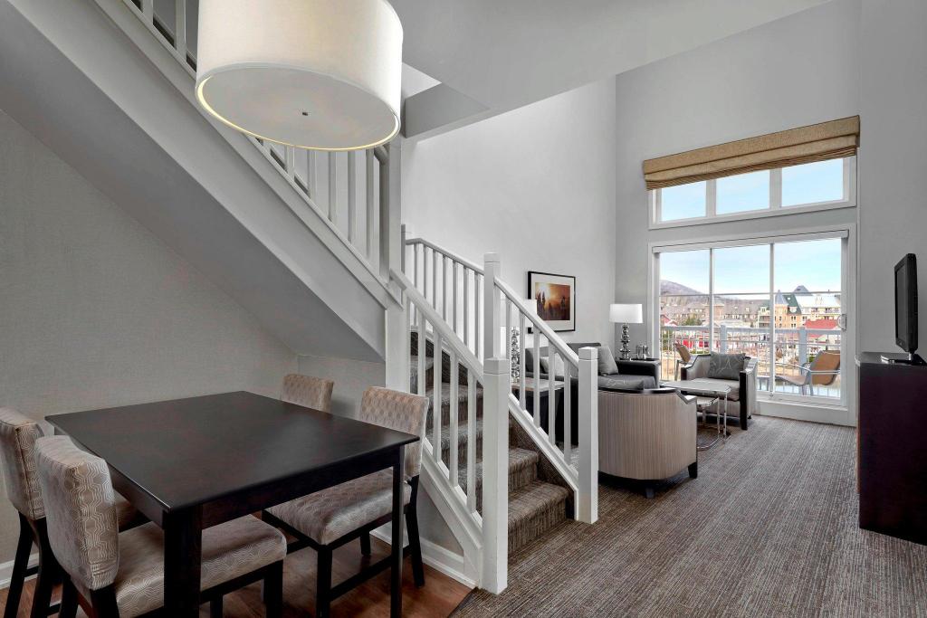 The room is amazing, very spacious and with a fireplace, which makes it even cozier. It's one of the few hotels in Blue Moutain that is pet-friendly and we felt it's really welcoming to our dog. The staff is amazing, the food at the hotel restaurant is really good, and it is at a very fair price. The hotel is located inside of the village and a few steps away from the lift, which makes it even more perfect The trip was amazing and I'll be staying at this hotel next time I go to Blue Mountain for sure