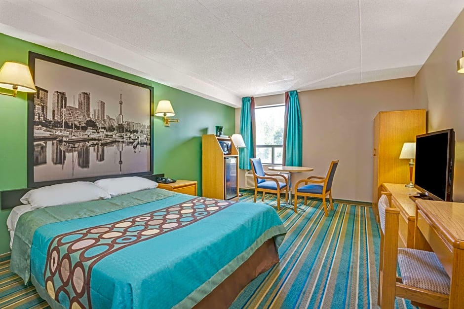At Super 8 by Wyndham Toronto East ON, guests can unwind and relax by enjoying the spa tub available on-site. For those looking to stay active, the hotel offers a private parking area. The air-conditioned non-smoking rooms provide a comfortable environment to rest, and guests can enjoy the convenience of room service. Additionally, with amenities like a balcony and free toiletries in each room, guests can enjoy a cozy and convenient stay. Whether guests are traveling with pets or enjoying a solo trip, the hotel's 24-hour front desk ensures that assistance is always available. With private parking on-site, guests can easily explore the city and return to the comfort of their room.