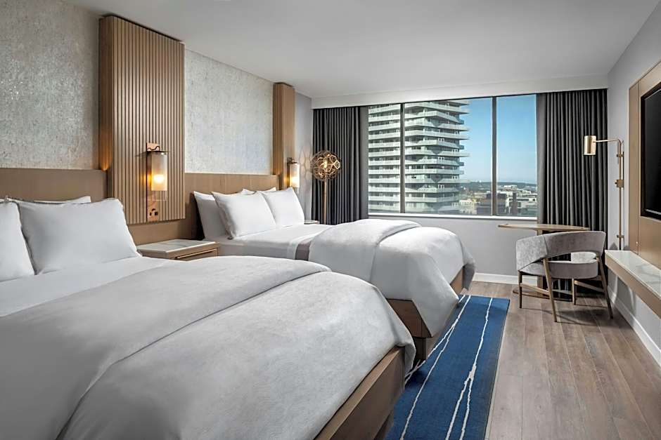 The Westin Harbour Castle, Toronto offers a variety of rooms including Studio Suites, Junior Suites, Guest rooms with either a city view or a lake view, and The Portlands Suite. The occupancy for the rooms ranges from accommodating 2 adults and 1 child to 4 adults and 3 children. Smoking is not allowed in any of the rooms. The bed sizes vary depending on the room, with options including king size beds, double beds, and sofa beds. The room sizes range from 301 sqft to 1292 sqft.