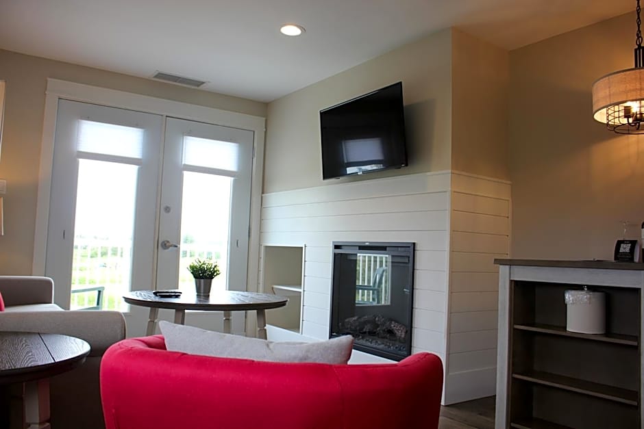 This cottage includes a spa bath, fireplace, patio, kitchenette, and sofa bed.