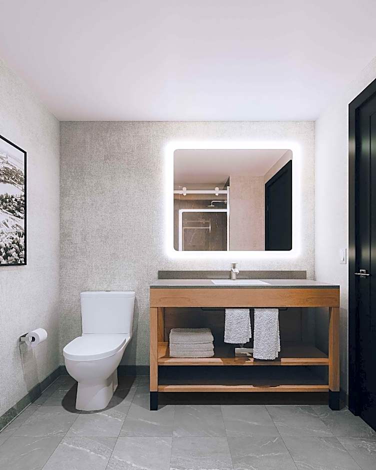 Everything was pristine. Found out later the hotel is only a few months old. The rubber coating on the weights in the well-equiped fitness room still smelled new. I loved the modern design and layout of my room with its sofa as a separate nook. There were nice touches like a foot rest in one corner to use if shaving your legs. The breakfast buffet had better-than-the-usual offerings: the yogurt bar with many topping options, egg bites, belgian waffles instead of pancakes, real maple syrup, and chocolate milk. The staff were all friendly and spoke for English and French.