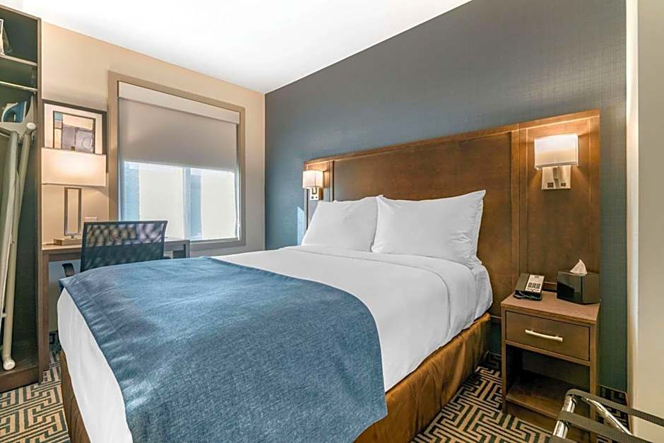 At Quality Inn Centre-Ville, every traveler will find a room that meets their unique needs, from cozy singles for solo adventurers to spacious family suites perfect for group getaways! Imagine settling down in a charming queen room, where after a day of strolling through charming streets, you can unwind in comfort. With options varying from 1 Twin to 2 Queen Beds, accommodating couples, small families, or even larger crews of four adults and three children is a breeze. Whichever choice you make, expect a delightful haven that feels just like home after an exciting day exploring Montreal's treasures.