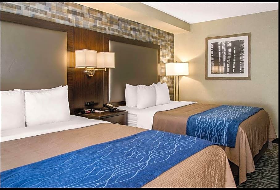 The Comfort Inn Montreal Airport offers various room options including the Queen Room with Two Queen Beds, King Room, and Standard Queen Room with Two Queen Beds. All rooms are non-smoking and have a room size of 3229 sqft. The Queen Rooms with Two Queen Beds can accommodate up to 4 adults and 3 children, while the King Rooms can accommodate 2 adults and 1 child. Bed sizes vary between Queen and King size.