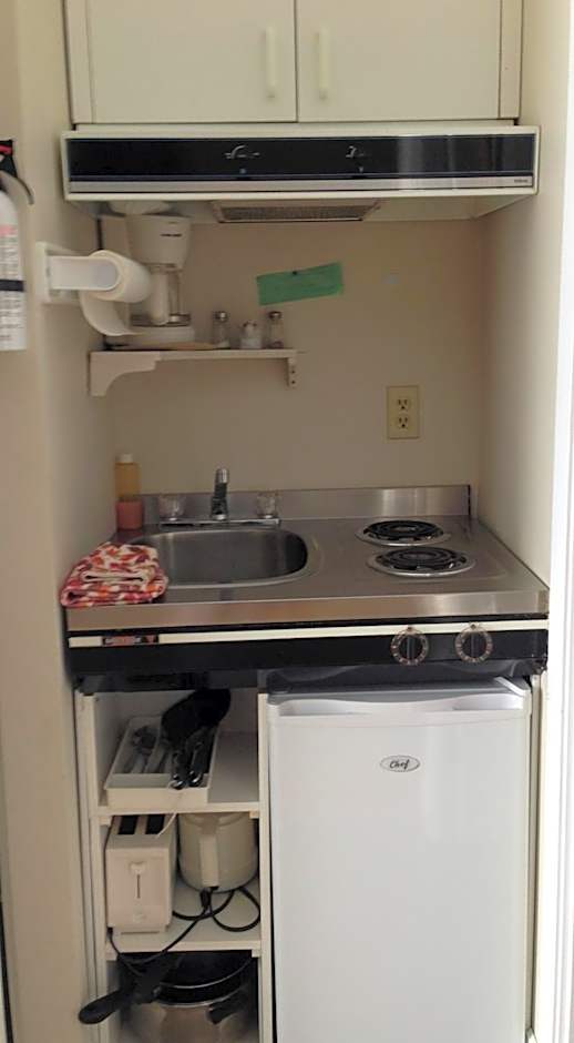Basic motel with great price, small kitchenette has all basic items. 1 min walk to beach, pets allowed, spacious porch with table, chairs & bbq
