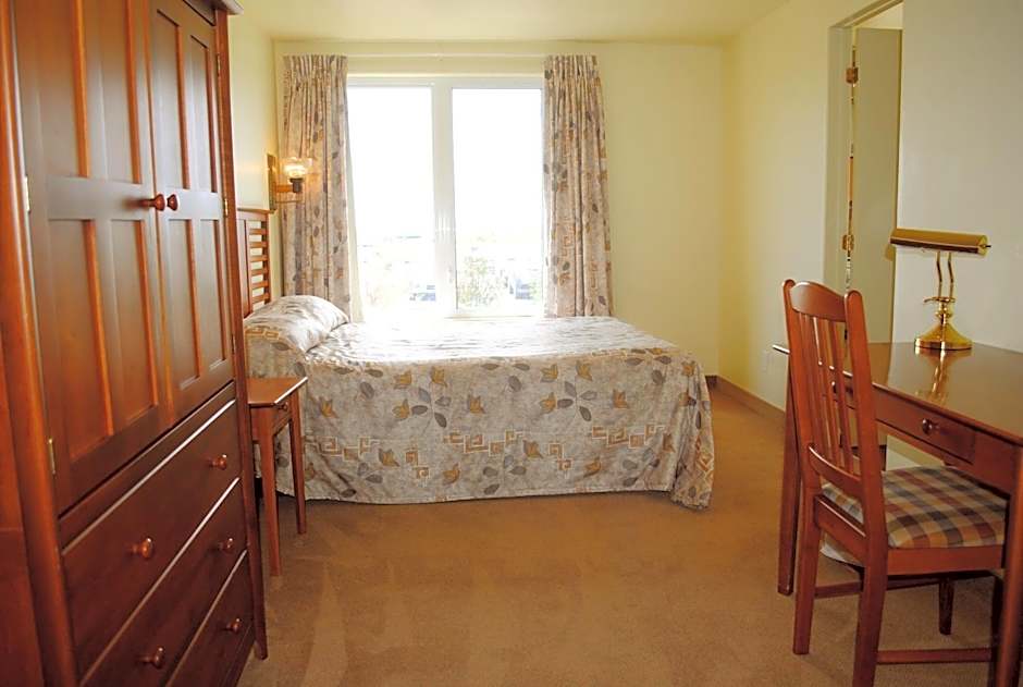 The room had enough space to move around. I liked having a coffee machine in the room, it was nice to make a quick coffee in the morning before heading out. The bed was super comfortable, and the bathroom was new and clean. I loved having a parking spot right in front of my room door.