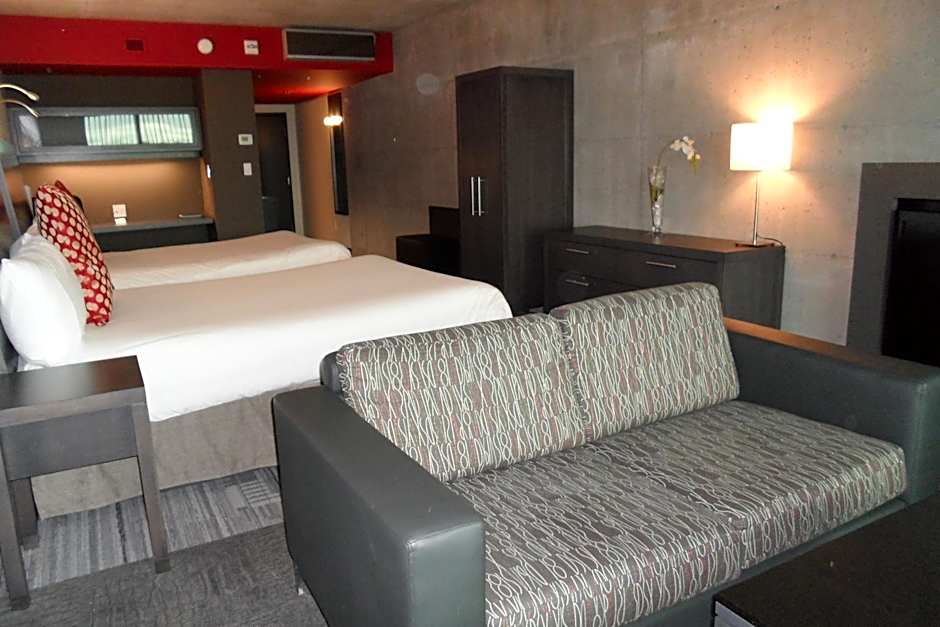 The Grand Times Hotel Sherbrooke offers a variety of room types including those with 2 Queen Beds, a Deluxe 1 King Bed, and a Prestige Suite. Smoking is not allowed in any of the rooms. Accommodations typically include space for 2 adults and 1 child, with bed sizes ranging from Queen to King.
