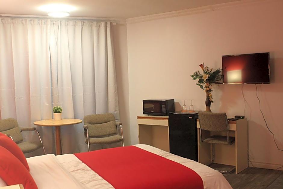 This suite features one queen bed and a Jacuzzi.