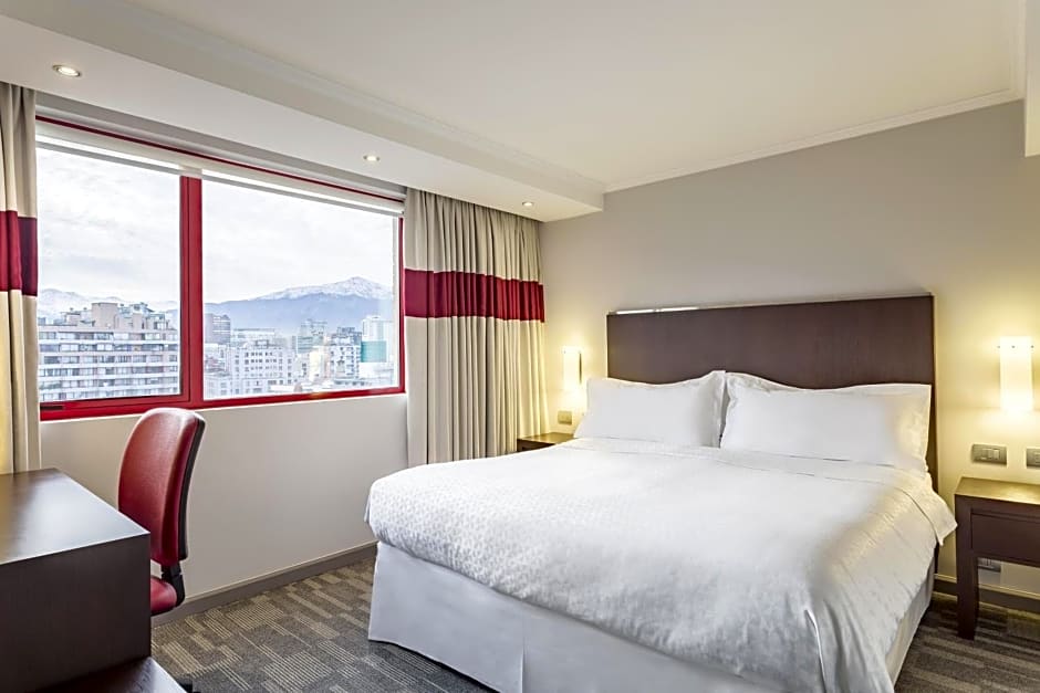 The Four Points by Sheraton Santiago offers a variety of room types including suites and guest rooms. The rooms range in size from 344 sqft to 452 sqft and all have a city view. Smoking is not allowed in any of the rooms. The rooms can accommodate 2 adults and 1 child and are furnished with a king-size bed.