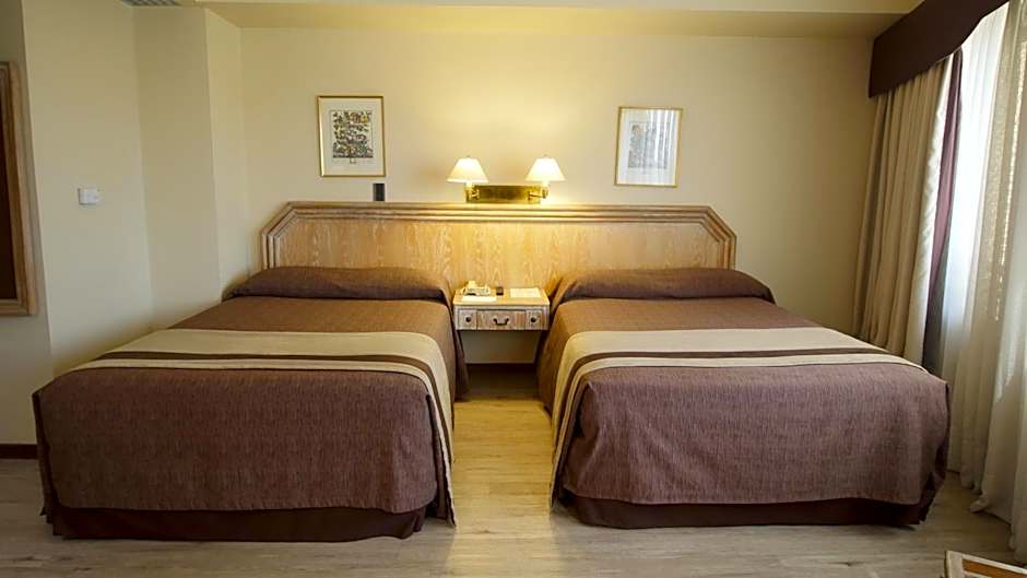The hotel offers Queen Rooms and Twin Rooms. The Queen Room has a double bed and accommodates 2 adults and 1 child, while the Twin Room has 2 twin beds and also accommodates 2 adults and 1 child. Both room types have a size of around 280-323 square feet and do not allow smoking.