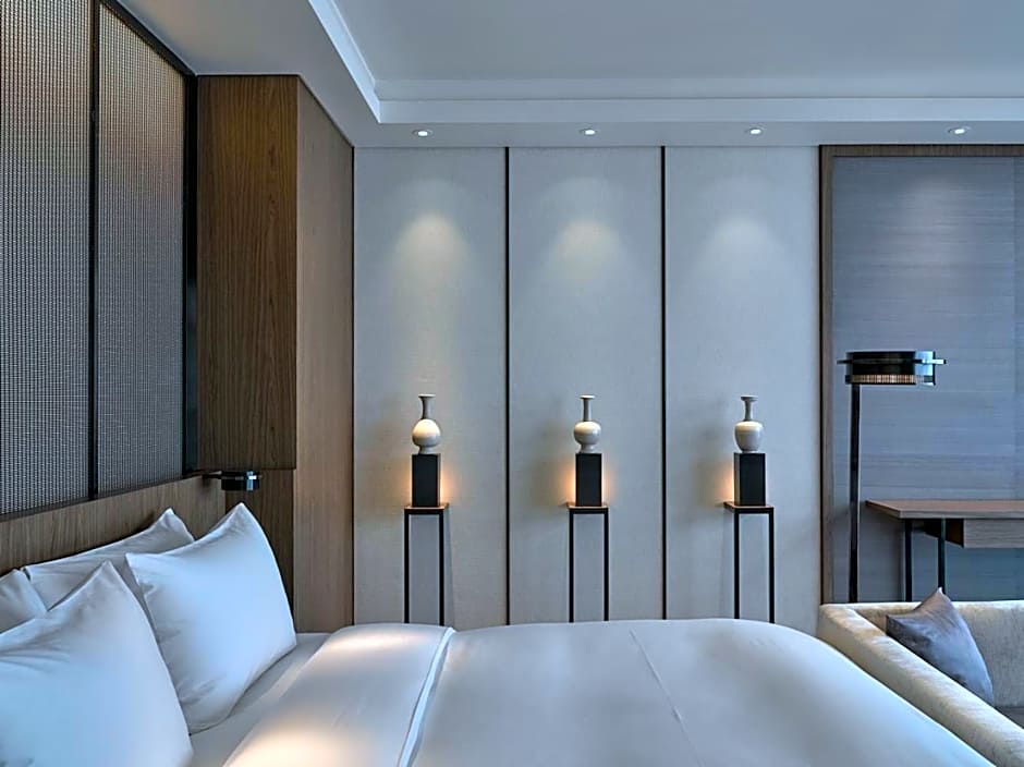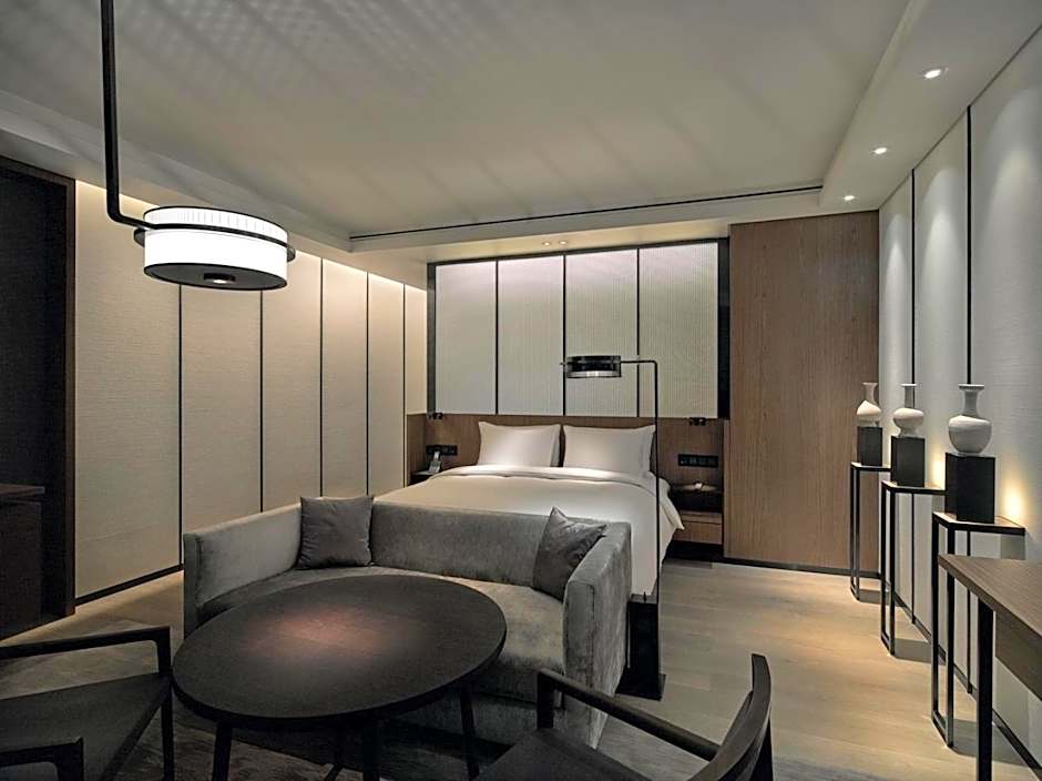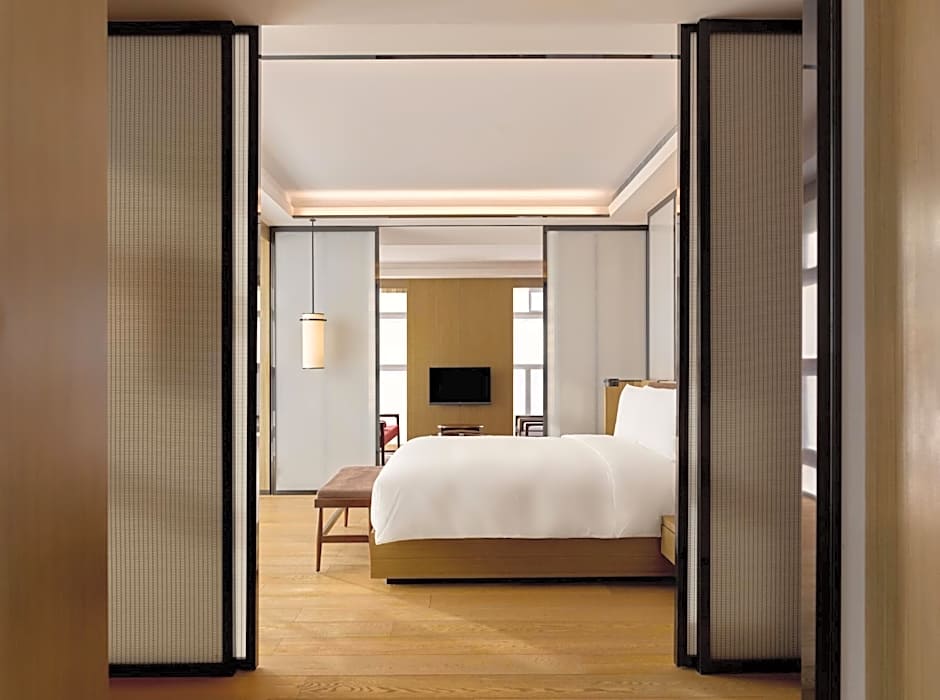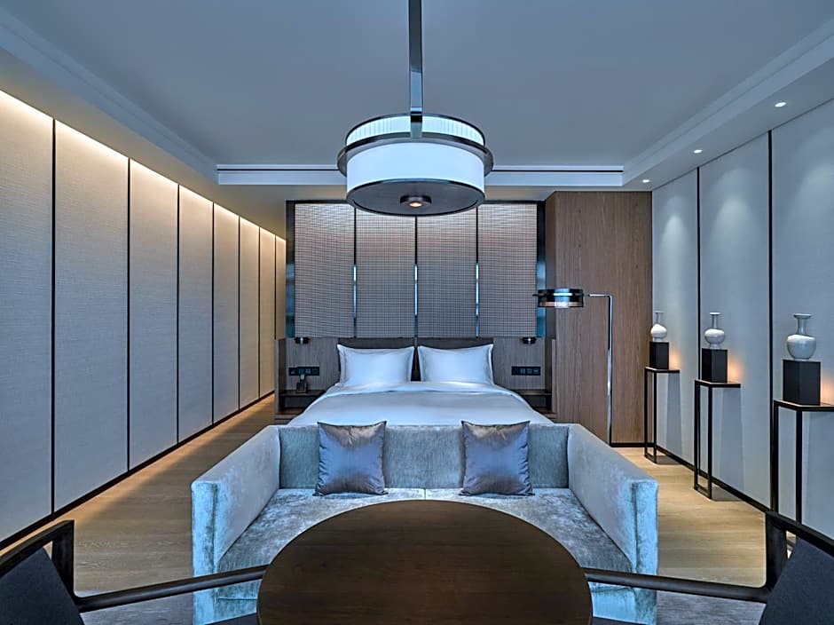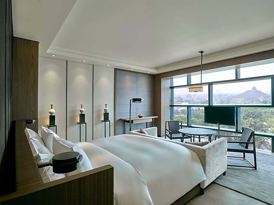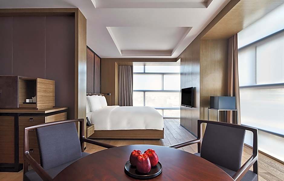 The 100 sqm Grand Suite comes with panoramic views across the Forbidden City. It features separate living and dining rooms, a scholar room for work or reflection, full-sized walk-in wardrobe as well as an additional bay with a lounge and daybed.