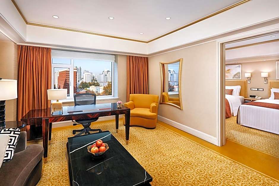 Accommodations span a broad spectrum of luxury, from city-view suites to expansive ones designed for comfortable stays. Notable options include the Presidential Suite, City View, at 2152 square feet; the Vice Presidential Suite, City View with balcony, at 1399 square feet; the Ambassador Suite at 1076 square feet; and the St. Regis Suite at 700 square feet, with other city-view and deluxe options also on offer. These spacious choices are ideal for travelers seeking refined comforts and generous space to relax after days of exploration.