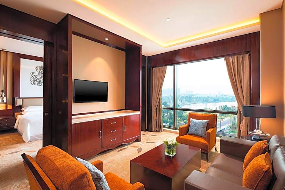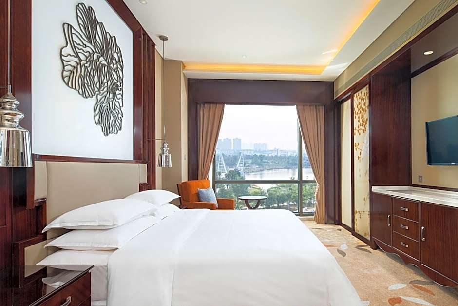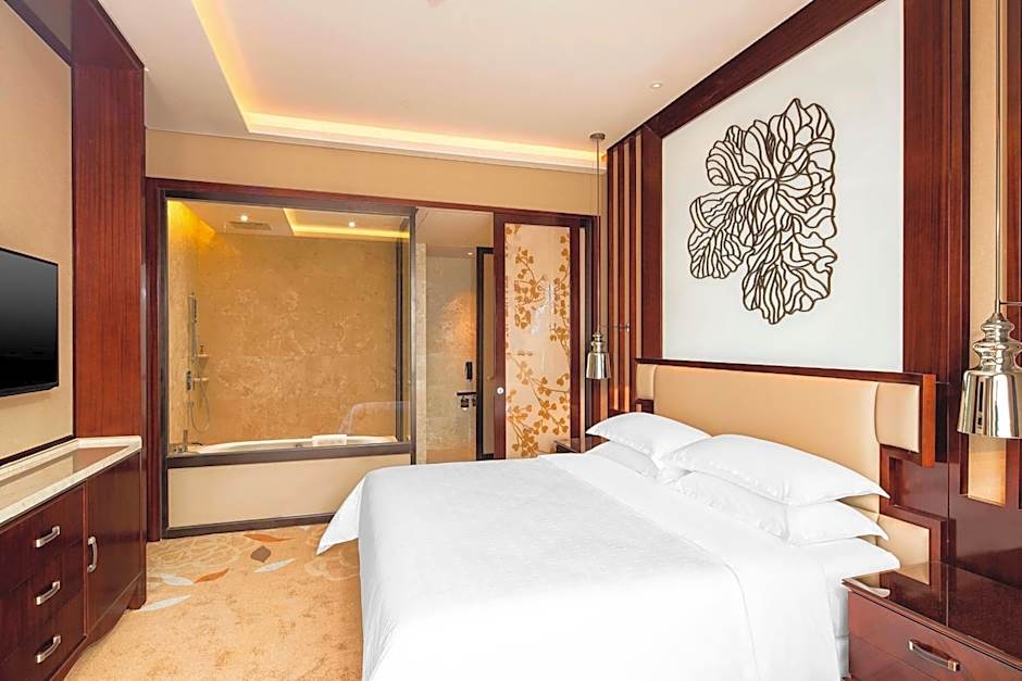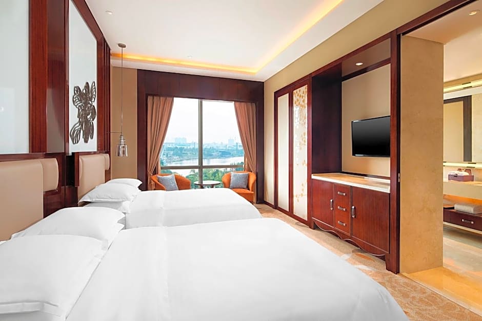 Indulge in a range of fantastic amenities during your stay, including a free indoor swimming pool, complimentary Wi-Fi, and a kid-friendly buffet to keep the little ones satisfied. The hotel also boasts a spa, sauna, fitness center, and even a water park for some extra fun (extra charges may apply). For those looking to explore the area, the hotel offers a shuttle service to whisk you away on your adventures. With stunning lake views and soundproof rooms for a peaceful night's sleep, Sheraton Changde Wuling Hotel truly caters to every guest's needs.