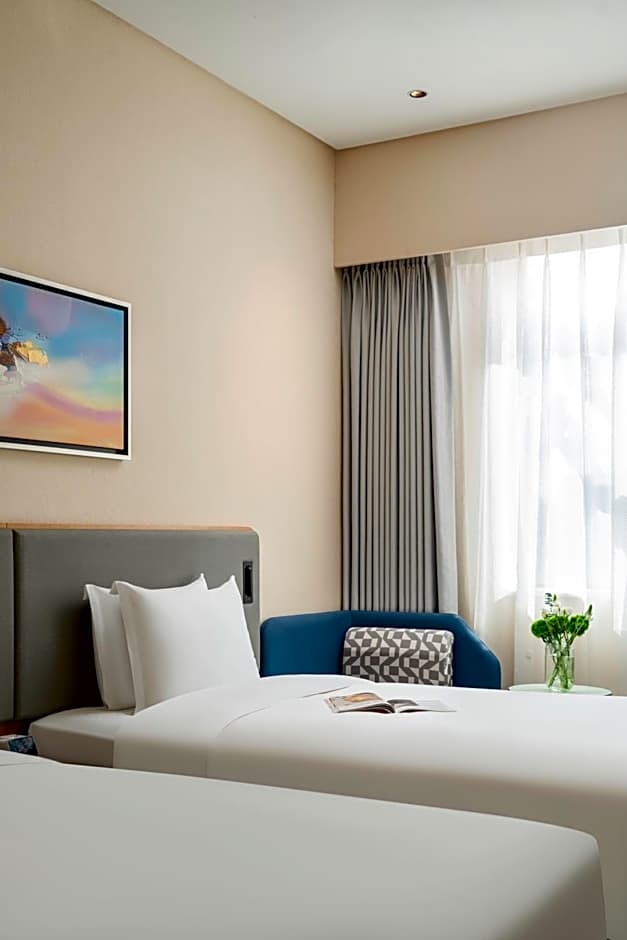 Featuring free toiletries, this twin room includes a private bathroom with a walk-in shower, a hairdryer and slippers. The air-conditioned twin room features a flat-screen TV with cable channels, soundproof walls, a dining area, a wardrobe as well as city views. The unit has 2 beds.