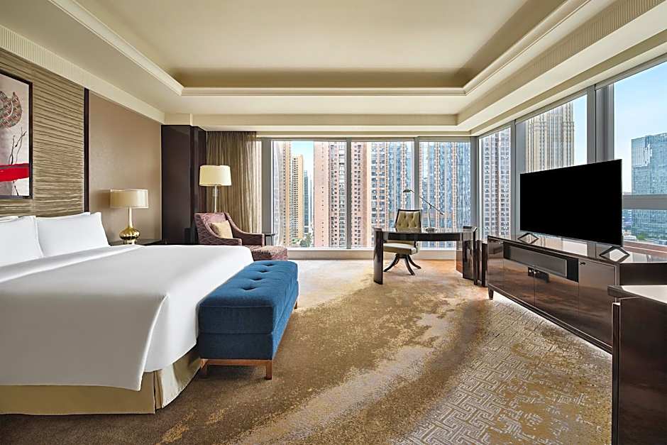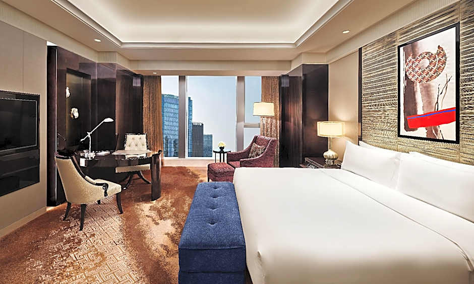 Offering a panoramic city view and located on floor 28 to 31, this room features traditional Chengdu style along with modern amenities including a walk-in wardrobe, luxury linen and bedding, a marble bathroom with rainshower.