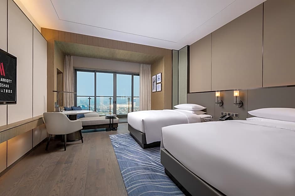 The Foshan Marriott Hotel offers a variety of rooms including Deluxe Twin Rooms, Executive Grand Deluxe Rooms with Club Lounge Access, Larger Executive King Suites with Club Lounge Access, Executive Deluxe Double Rooms with Two Double Beds and Club Lounge Access, Premier Double Rooms with Two Double Beds, King Rooms with Terrace, Premier King Rooms, Executive Deluxe King Rooms with Club Lounge Access, Deluxe King Rooms, Executive King Corner Suites with Club Lounge Access, and Double Rooms with Terrace. These rooms range in size from 517 sqft to 1313 sqft and all have non-smoking policies. The rooms can accommodate up to 3 adults and feature either double beds or king size beds.