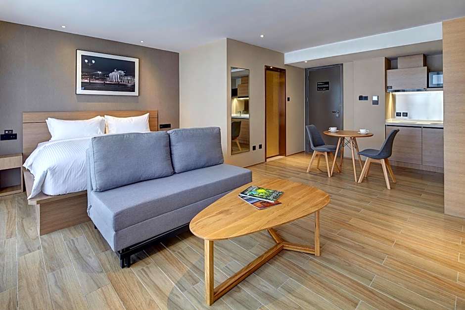 This suite is consisted of of 1 living room, 1 separate bedroom and 1 bathroom with a shower and free toiletries. Meals can be prepared in the well-fitted kitchen, which is fitted with a stovetop, a refrigerator, kitchenware and a microwave. The air-conditioned suite offers a flat-screen TV, soundproof walls, a wardrobe, a safe deposit box as well as city views. The unit offers 2 beds.