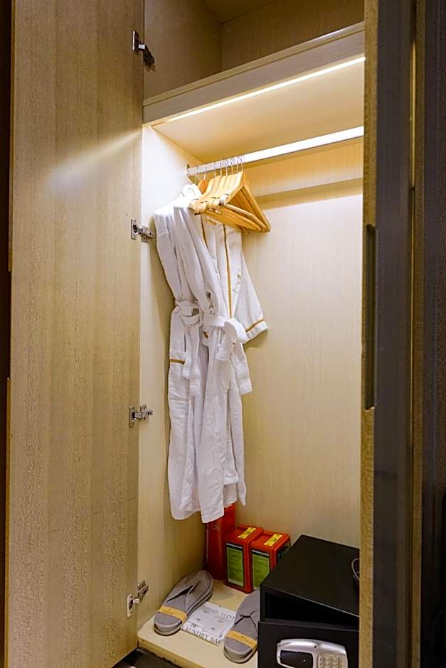 The hotel offers a selection of room types to suit your needs. Stay in a Superior Double Room with no window, perfect for those who prefer a peaceful retreat. The room features a comfortable King-size bed and can accommodate up to two adults and one child. If you're traveling with a companion and prefer separate beds, the Superior Twin Room is a great choice. With its two Twin beds, this room also offers a relaxing atmosphere and can accommodate up to two adults and one child. For those on business trips, the Business Twin Room and Business Double Room provide the perfect blend of comfort and functionality. Lastly, the Deluxe Double Room offers a spacious layout with a King-size bed for a truly luxurious stay.