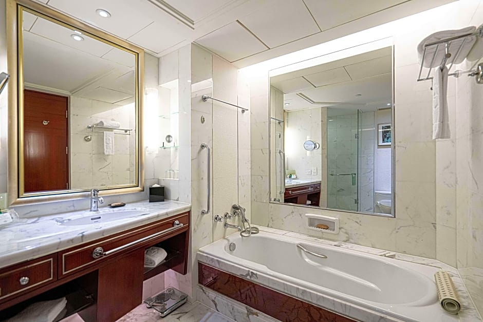 Features Spacious work area for your comfort. A marble-floored bathroom with plush bathrobes, slippers, premium Shangri-La toiletries, a soaking tub and a separate, glass-enclosed shower.