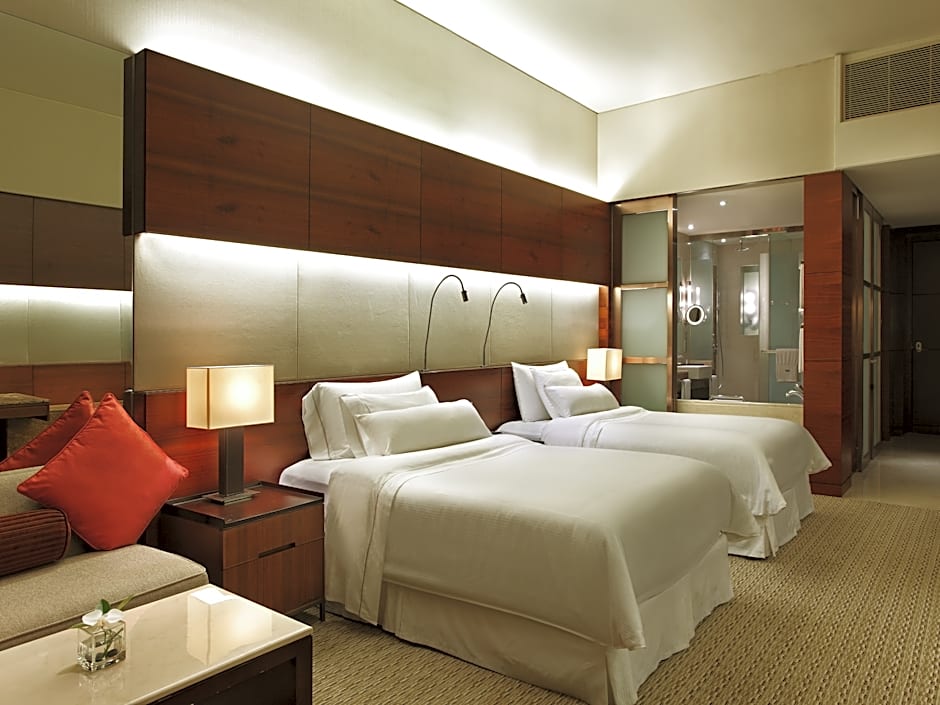 The Westin Guangzhou offers a variety of room options including Deluxe Twin, Renewal Deluxe King, and Executive King Suite. All rooms are non-smoking and can accommodate 2 adults and 1 child. The room sizes range from 538 sqft to 1033 sqft and the beds can be either 2 twin beds or 1 king-size bed.