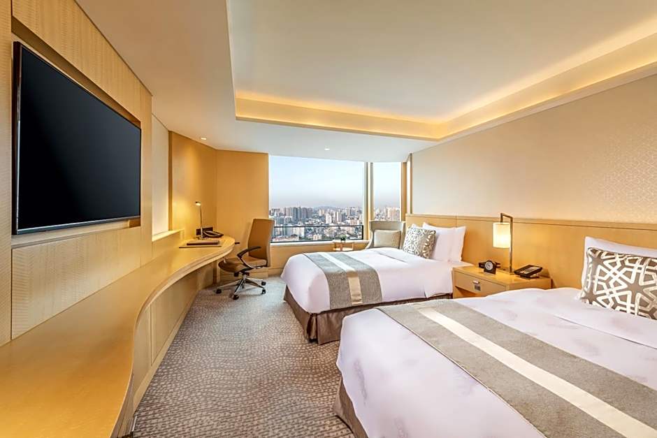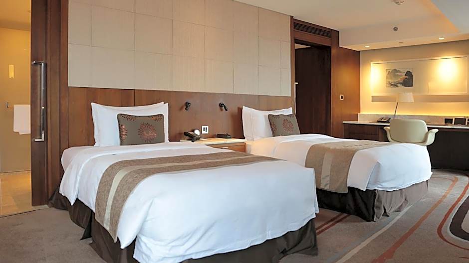 This twin room has a electric kettle, bathrobe and flat-screen TV. Room offers floor-to-ceiling windows with views of the Pearl River. The private marble bathroom offers a spa-like deep soaking bathtub and separate rainshower.