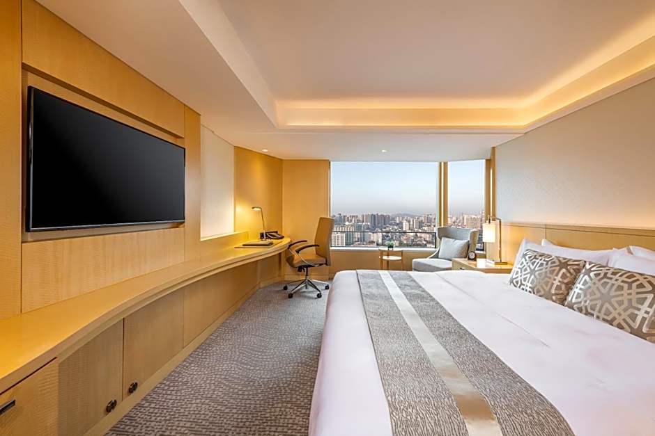 Rooms is well appointed with warm colors and offers far reaching Shamian and Guangzhou view.