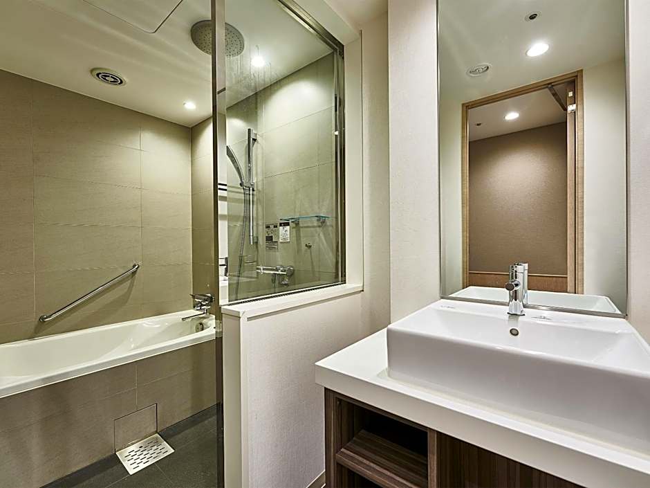 The spacious suite has 1 bedroom and 1 bathroom with a shower and free toiletries. This suite is air-conditioned and features soundproof walls, a wardrobe and a safe deposit box. The unit has 1 bed.