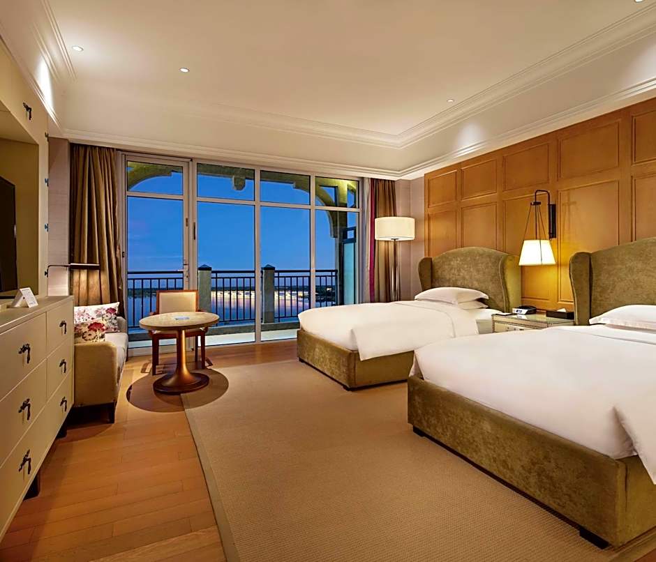 Accommodations span a broad mix of room types, from Deluxe options (King or Twin) with balconies and lake views or bathtubs, to Executive and Family configurations, and up to Presidential and Junior Presidential Suites. Many layouts are designed to accommodate groups, with several choices featuring lake views and private balconies to enjoy the scenery.