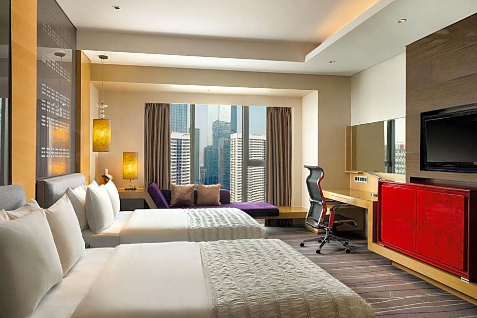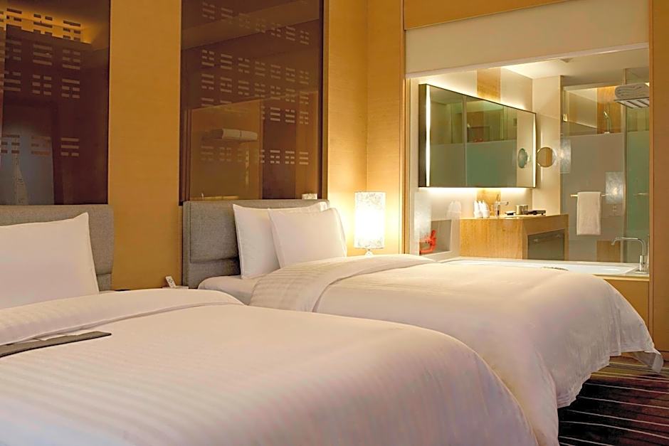 Guests will have a special experience as the twin room offers a hot tub. Providing free toiletries and bathrobes, this twin room includes a private bathroom with a bath, a shower and a hairdryer. The spacious air-conditioned twin room provides a TV with cable channels, a mini-bar, executive lounge access, a wardrobe as well as city views. The unit offers 2 beds.