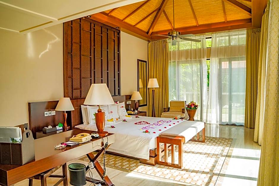 Room offers views of the lake and golf course, free Wi-Fi, a private pool and a private garden. It also features special honeymoon setups for guests.