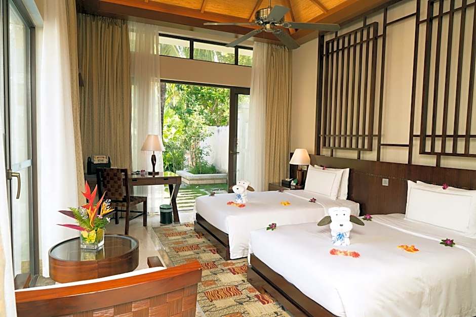 Minimum price starts from . On-site highlights include a private pool, a beachfront setting, an outdoor swimming pool (free), water sports facilities on site (free), and a Kids' club (free). Other perks include private parking (free), Wifi (free), a fitness center (free), a restaurant, a bar, and 24-hour front desk service.