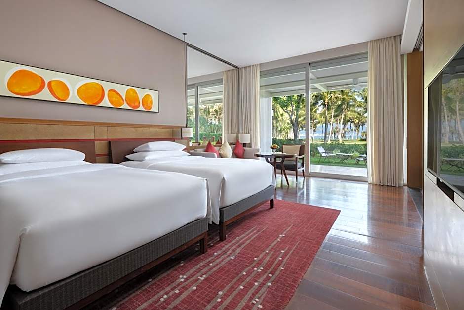 This 62-square-yard room offers two twin beds and features bay window designed for intimate views of the hotel’s tropical gardens and partial views of the South China Sea.