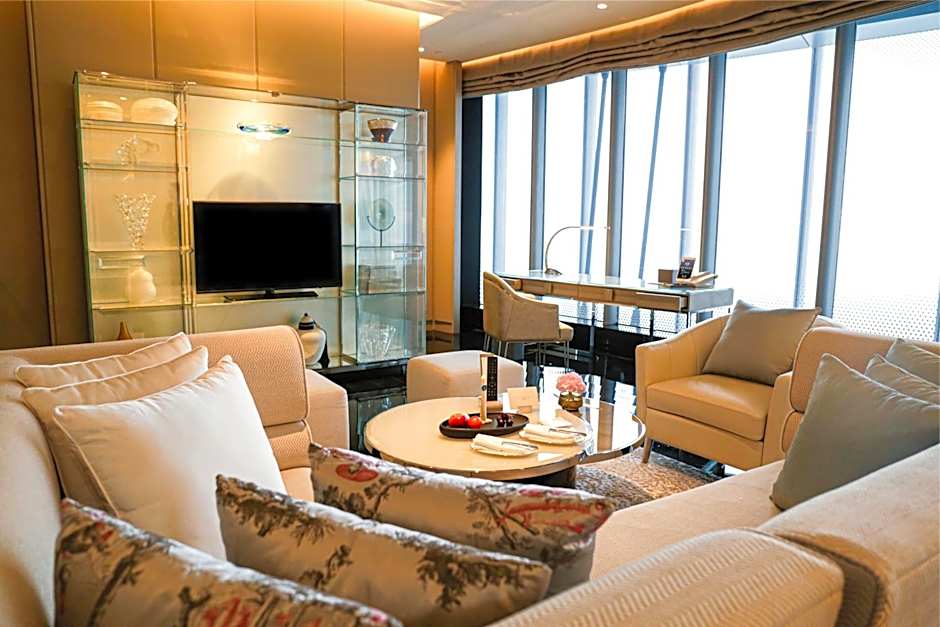 The J Hotel at Shanghai Tower offers a variety of rooms including suites such as the Grand Suite Bund View, J Suite, Jin Jiang Suite, and River View Suite. Double rooms like the Stateroom King, Skyline Room, and Premium Stateroom King are also available. Guests can expect spacious accommodations, with room sizes ranging from 657 sqft to 4090 sqft. Each room can accommodate up to 2 adults and 1 child, and smoking is not allowed in any of the rooms. Bed sizes predominantly feature King size beds, with some double bed options in the Twin room.