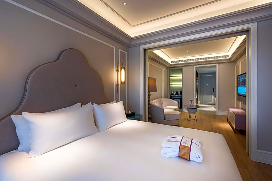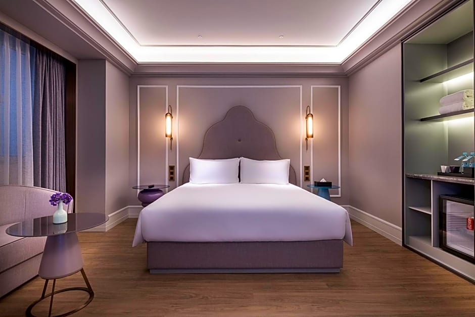 invites travelers to a stay in Shanghai, China. The address is 99 Fu Quan Road, and it sits about from the city center.