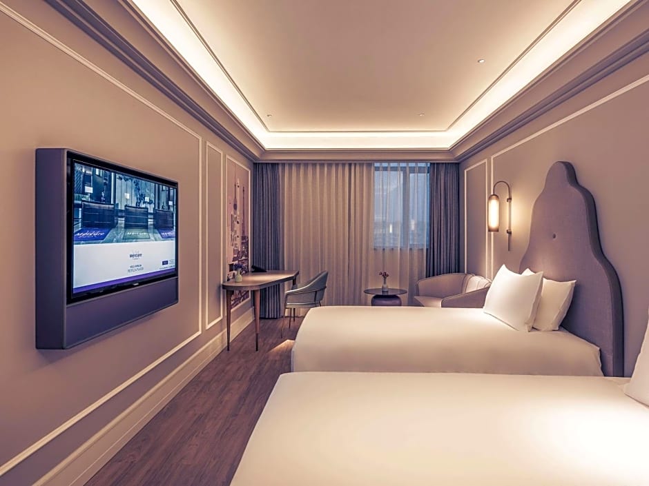 Two on-site restaurants offer a modern ambience, serving Chinese and European cuisines.