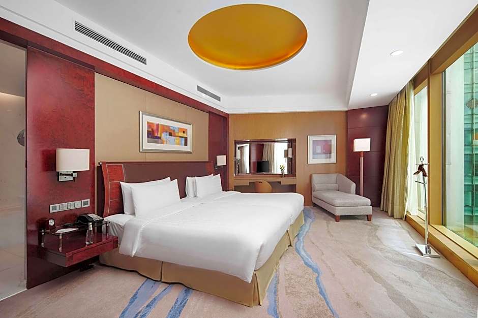 Guests at the Pudong Shangri-La, Shanghai hotel can indulge in various leisure activities. They can unwind in the indoor swimming pool, which boasts stunning views and caters to adults only. For a relaxing experience, they can enjoy the steam room, sauna, and spa amenities. Active guests can make use of the fitness center and tennis court. Dining options on-site are plentiful, offering a wide range of cuisines from Chinese, Japanese, and seafood to European and international fare. Whether relaxing with a drink at the bar, enjoying a meal at one of the many restaurants, or simply taking in the panoramic views, guests have a variety of leisure amenities to choose from during their stay.
