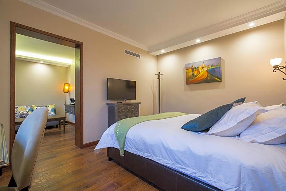 This suite has a seating area, satellite TV and air conditioning.