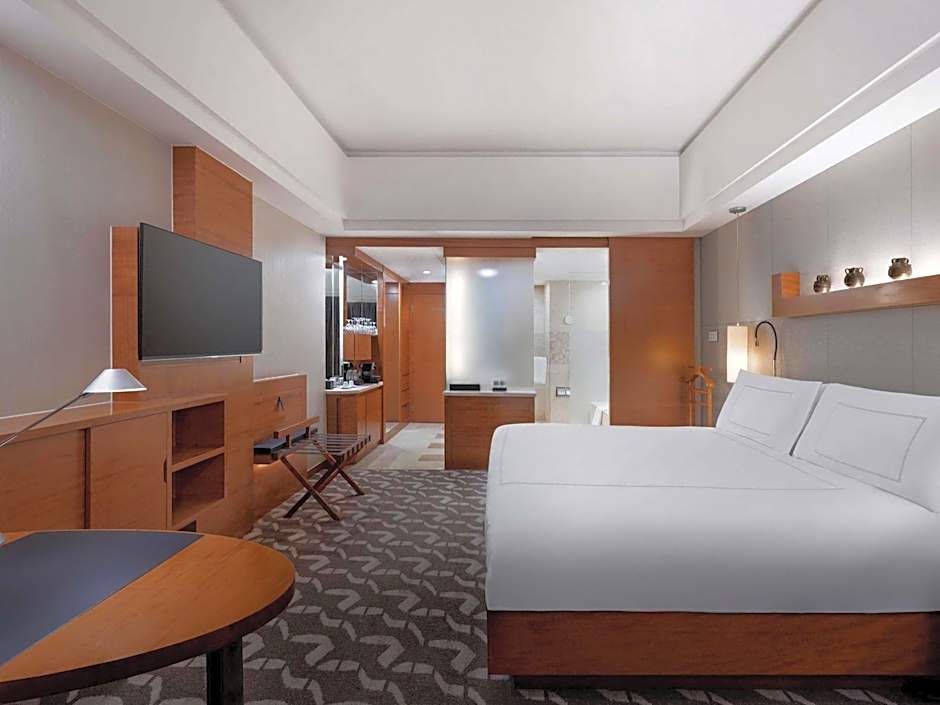 This spacious suite consists of 1 living room, 1 separate bedroom and 1 bathroom with a bath and free toiletries. The air-conditioned suite provides a flat-screen TV with satellite channels, a mini-bar, executive lounge access and a coffee machine. The unit offers 1 bed.