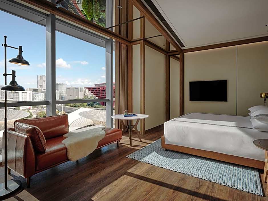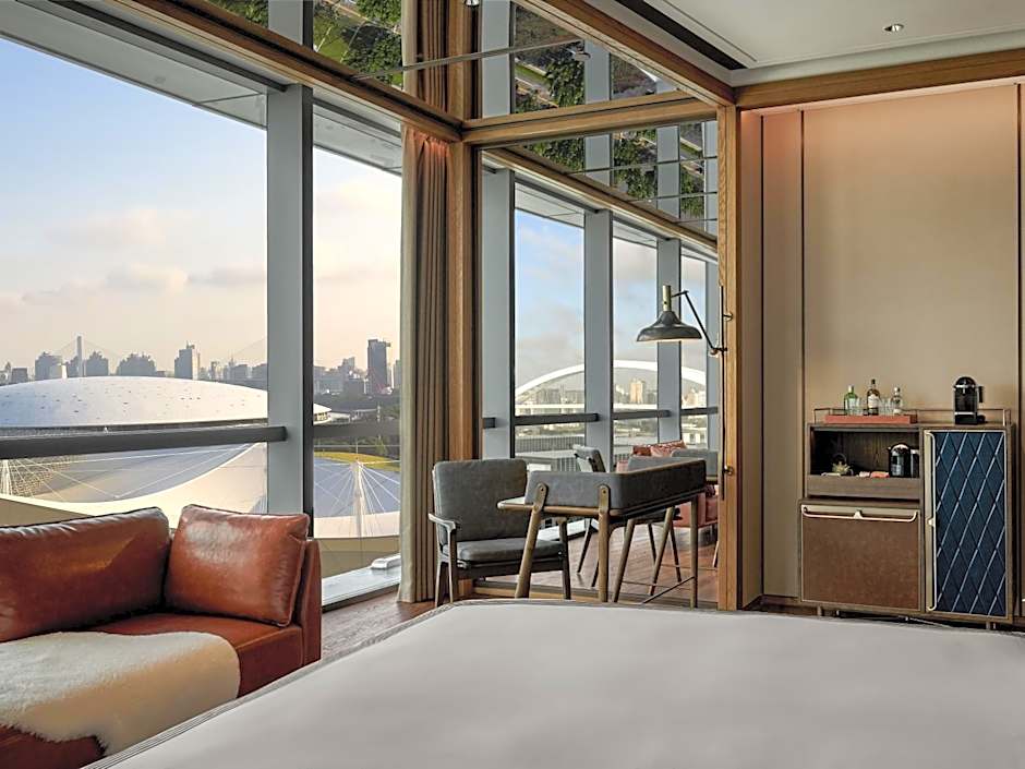Thompson Shanghai Expo stands tall as a 5-star retreat in Shanghai's Pudong New District, just 3,2μίλ. from the city center. Located at 1399 Shibo Avenue, the hotel treats guests to river and landmark views, pairing stylish design with attentive comfort for a memorable stay.