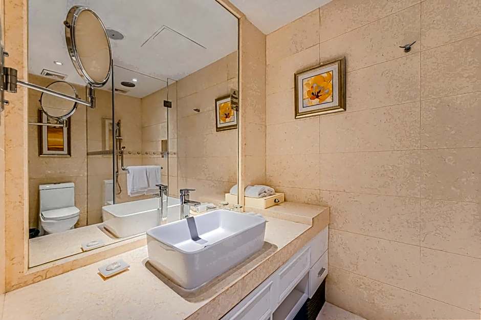 Located on the floors 9-19, the suite features a flat-screen cable TV, a seating area and a mini-bar. Private bathroom comes with a shower and free toiletries.