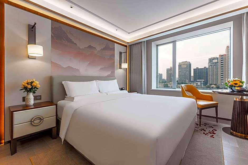 Three on-site restaurants showcase Asian flavors: 云海轩, 汉城馆, and 粤乡锦绣, inviting guests to explore different regional tastes without leaving the hotel. A Bar provides a relaxed spot for a drink, and free live music performances add a lively touch to evenings.