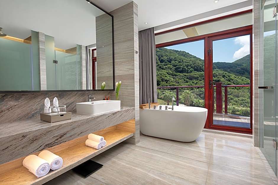 Experience a luxurious stay at the 5-star , located at No.8 Wutang Road, Zhujiajian, Putuo District, Zhoushan, China. Wake up to a delicious breakfast served at the hotel and get ready for a day of fun and relaxation. With a water park, indoor and outdoor swimming pools, spa, hot tub, and even a kids' club, this hotel is perfect for families and solo travelers alike.