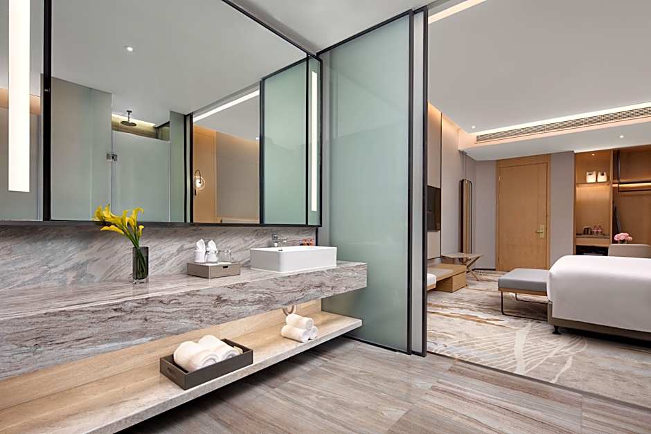Take advantage of the stunning views of the mountains and garden from the comfort of your room, which is equipped with modern amenities such as air conditioning, free wifi, and a private bathroom. If you're in the mood for some sun and sand, the beach chairs/loungers are waiting for you by the sparkling waters. Enjoy a refreshing drink at the bar, work out at the fitness center, or simply unwind in the serene garden setting. With free parking and a 24-hour front desk, your every need is catered to at Crowne Plaza Zhoushan Seaview.