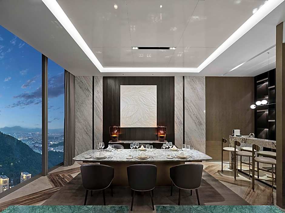 Dining options encompass a trio of on-site venues. 厨艺 全日餐厅 operates in a Modern, Romantic setting and serves American, Chinese, British, and Mediterranean cuisines. 青雅 中餐厅 offers Chinese dishes in a Modern ambiance. 大堂吧 provides a Modern, Romantic atmosphere with American and British influences for a relaxed gathering.