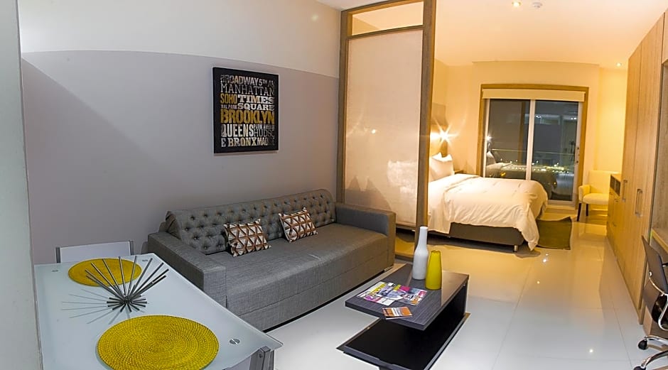 This suite offers a rooftop pool. This suite consists of 1 living room, 1 separate bedroom and 1 bathroom with a shower and free toiletries. The well-equipped kitchen features a stovetop, a refrigerator, kitchenware and a microwave. The air-conditioned suite provides a flat-screen TV with cable channels, a coffee machine, a dining area, a wardrobe as well as city views. The unit offers 2 beds.