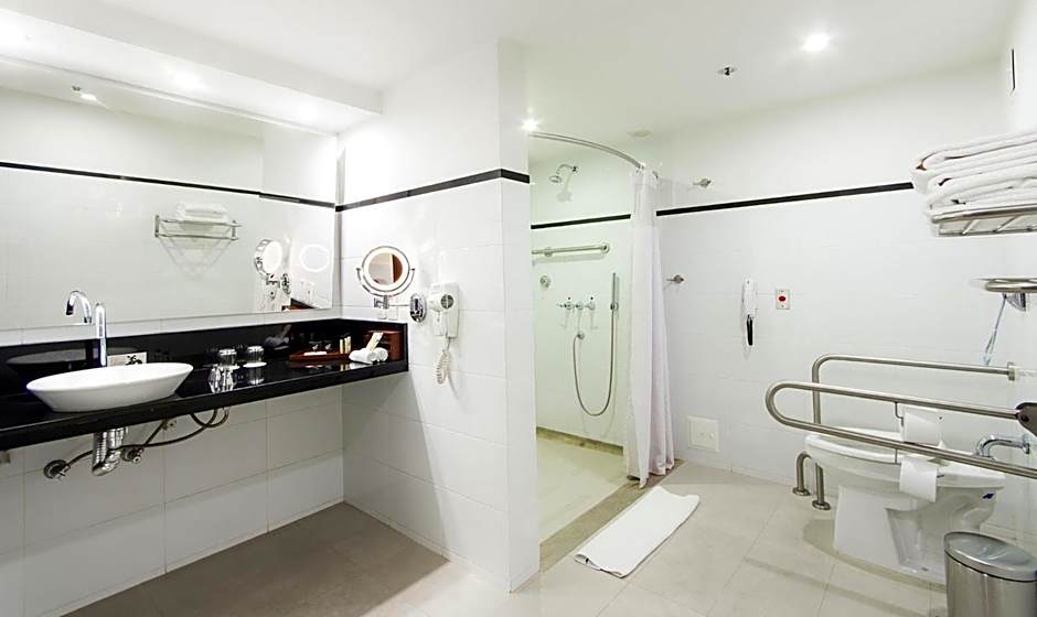 This spacious suite consists of 1 living room, 1 separate bedroom and 2 bathrooms with a walk-in shower and free toiletries. The well-fitted kitchen has a stovetop, a refrigerator, kitchenware and a microwave. This wheelchair accessible suite features a tea and coffee maker, a seating area with a flat-screen TV and a roll-in shower. The unit offers 2 beds.