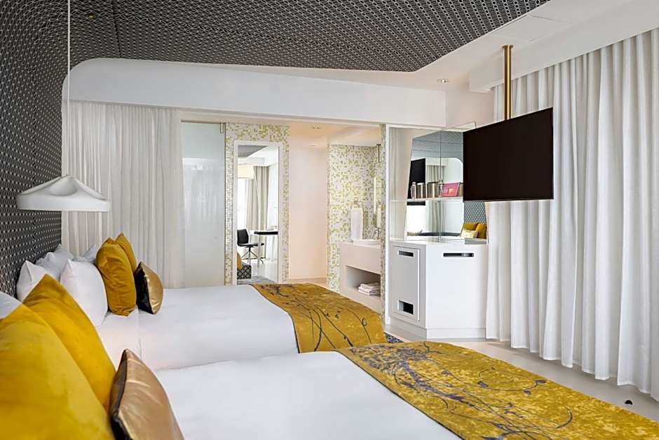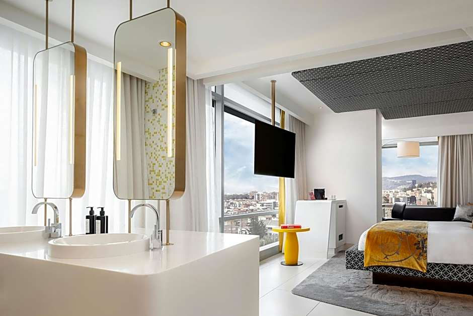 The W Bogota offers a variety of double rooms, including the Cool Corner Suite with a city view and 495 sqft of space, the Fantastic Suite with a city view and 743 sqft of space, and the Fabulous King and Spectacular Queen rooms, both with 388 sqft of space. All rooms accommodate 2 adults and 1 child and have a king-size bed. Smoking is not allowed in any of these rooms.